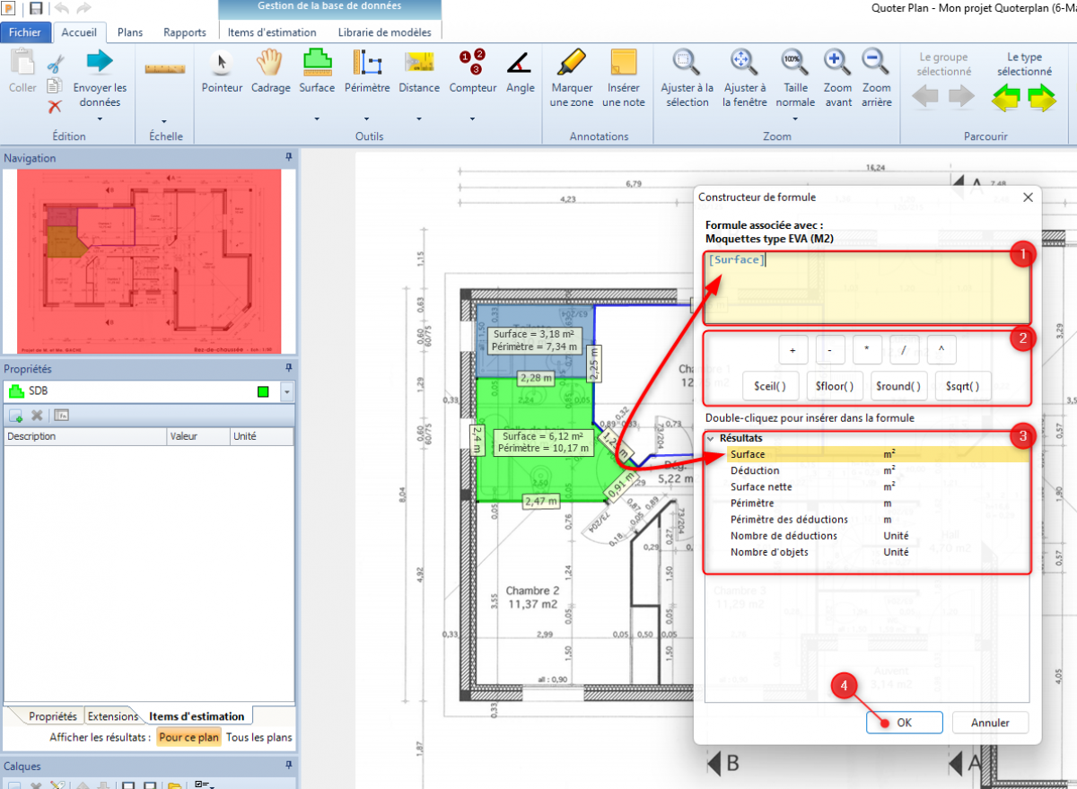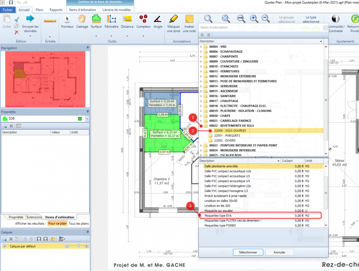 Démarrez Quoterplan, créez votre projet, importez vos plans 2D puis créez un métré.