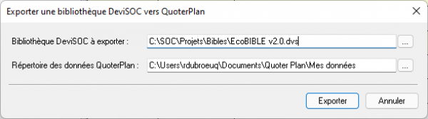 Le chemin de la bibliothèque DeviSOC à exporter (par défaut votre bible renseigné dans les préférences DeviSOC)