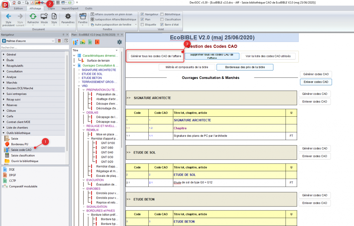 Le style « Saisie code CAO » permet de transformer votre bible en bibliothèque d'ouvrage utilisable pour Quoterplan.