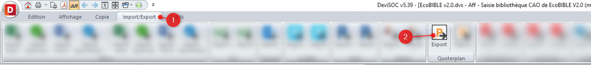 Cliquez sur le menu Import/Export puis sur le bouton Export de Quoterplan