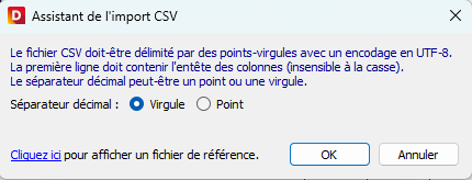 5. Sélectionnez le séparateur décimal présent dans votre fichier