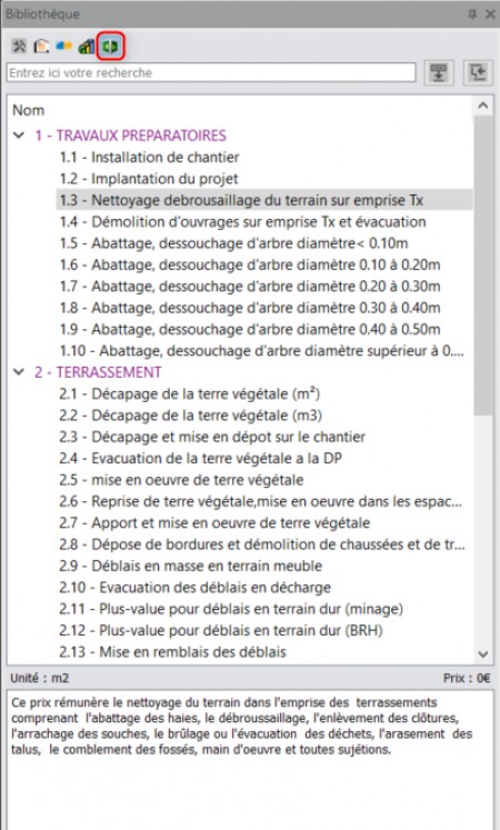 Sur cette page, vous allez apprendre à ajouter des bibliothèques pour les intégrer dans la rédaction de vos pièces écrites, telles que les CCTP (Cahier des Clauses Techniques Particulières), les DQE (Devis Quantitatifs Estimatifs), etc.