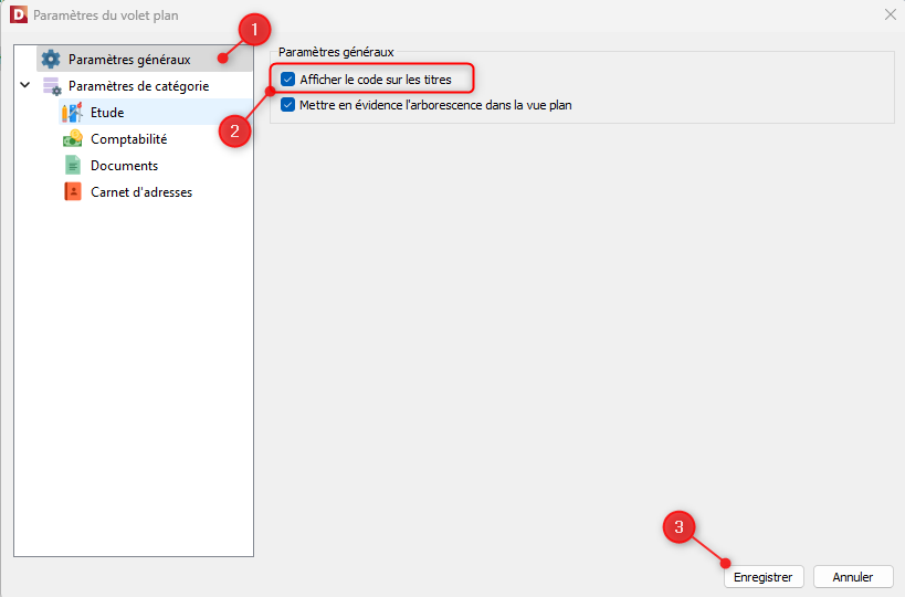 # Je souhaite afficher dans le volet plan la codification des lots et leur numérotation