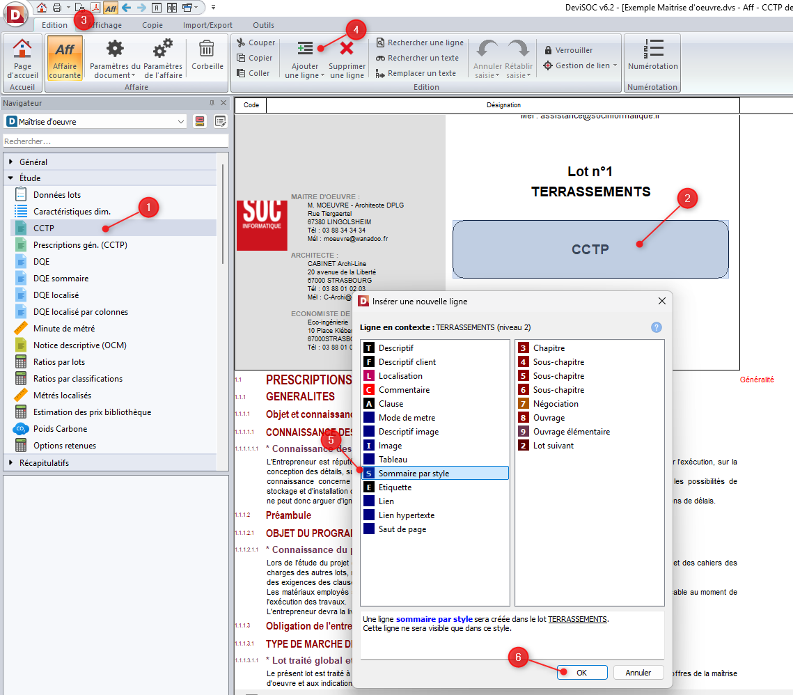 Dans **DeviSOC**, il est possible d’ajouter une ligne de type **SOMMAIRE** afin de simuler un sommaire lors de l’impression des documents.
