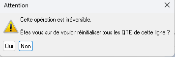 R**éinitialiser > Quantité sans métré (QTE niv9) à zéro**